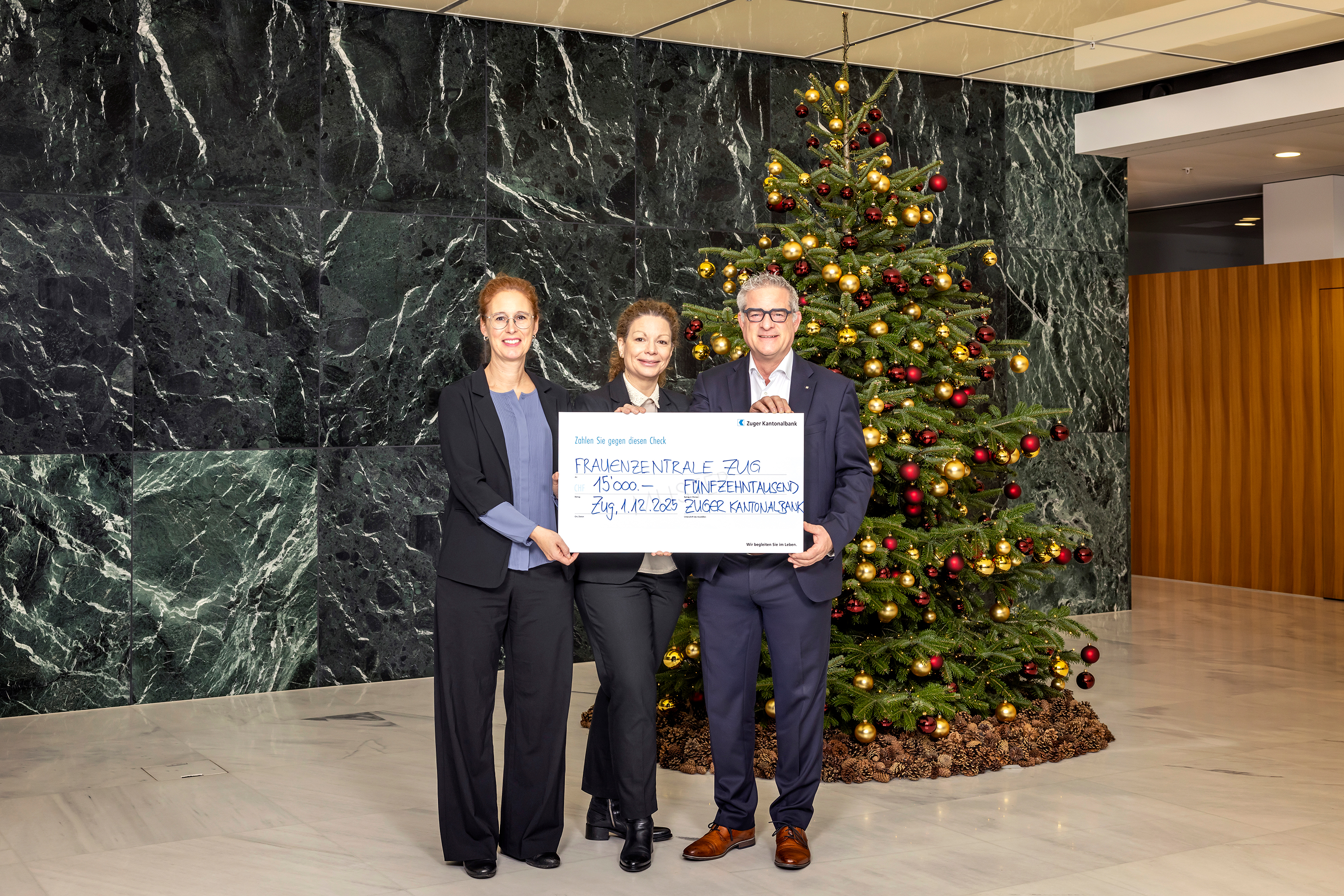 Auch in diesem Jahr engagiert sich die Zuger Kantonalbank in der Adventszeit für soziale Anliegen in der Region. Sie unterstützt mit ihrer Weihnachtsspende von 15’000 Franken den Fonds «Frauen in Not» der Frauenzentrale Zug. Der Fonds hilft Menschen in finanziell schwierigen Situationen.